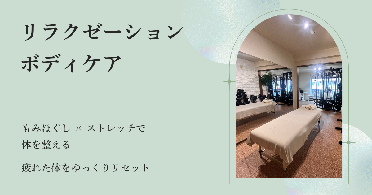 当ジムではトレーニングだけでなく、体をえるためのリラクゼーションボディケアも行っています。