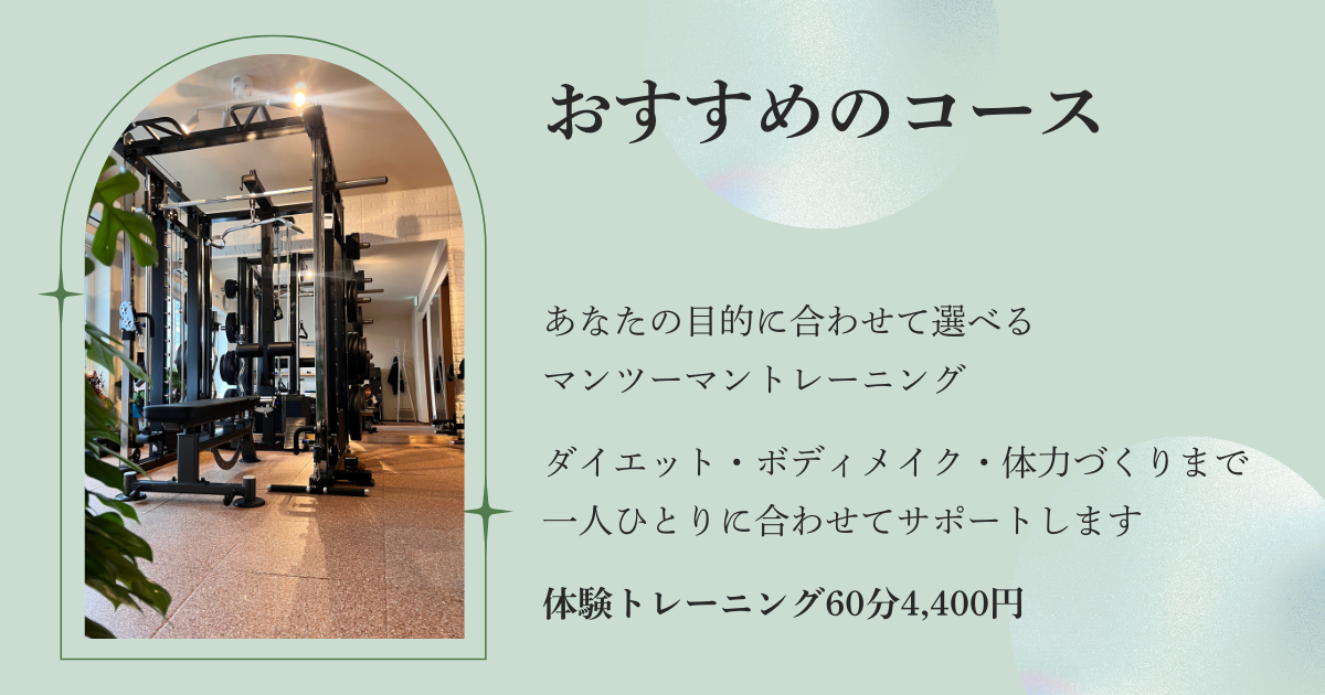 札幌円山エリアでパーソナルジムをお探しの方や、運動が久しぶりの方でも無理なく始められる内容になっています。